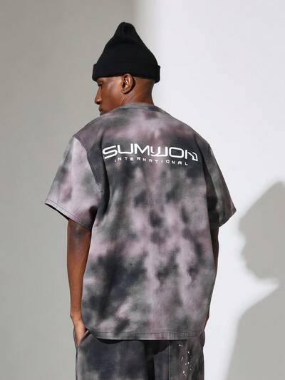 Jaqueta Denim oversize tie-dye de beisebol da universidade-50%