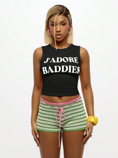 SUMWON WOMEN Camiseta regata com estampa de texto e declaração estética Y2KUS$ 10,15US$ 11,28