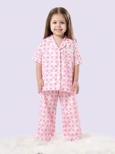 Conjunto de pijama com gola e estampa de coração e botões frontais-50%