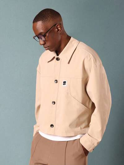 Sobrecamisa de lona sarja com bolsos frontais com botões-25%