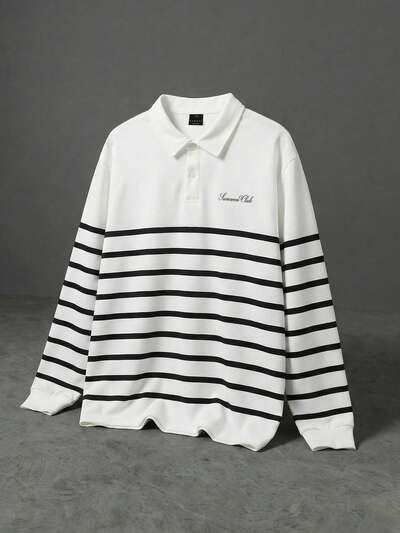Polo listrado casual preppy clássico retrô manga curta conforto durável modernoCamisa polo com estampa geométrica por toda a peça
