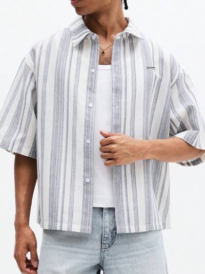 Camisa texturizada de manga curta com botões, leve e grande-15%