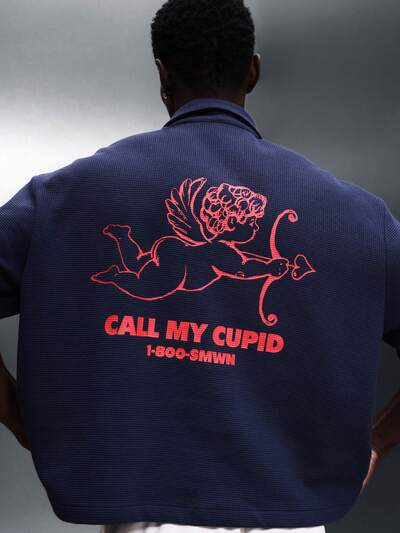 Camisa de manga curta com estampa de cupido nas costas para o Dia dos NamoradosNOVO