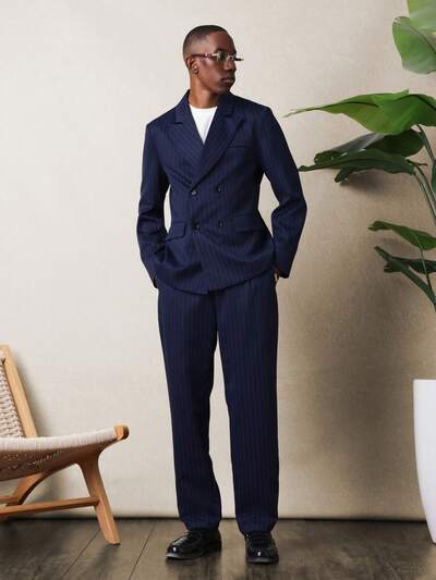 Terno risca de giz de abotoamento duplo com calça combinando