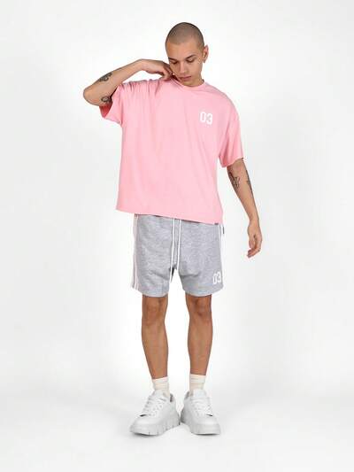 Conjunto coordenado de camiseta oversized com ombros caídos e manga curtaConjunto de camiseta e shorts folgados