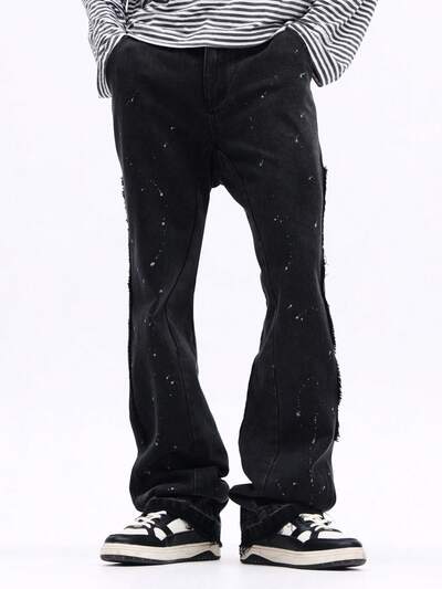 Calça Denim flare desgastada com respingos de tinta