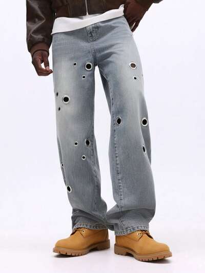 Calça Denim Reta Ajuste Leve Lavagem Clara Estilo Clássico de Cinco Bolsos Uso Casual Diário Relaxado Inspirado no Vintage Peças Inferiores Masculinas Simples