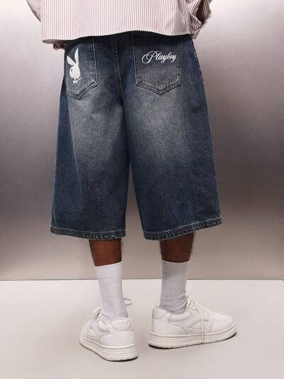 PLAYBOY X SUMWON Shorts Denim descontraídos com logo