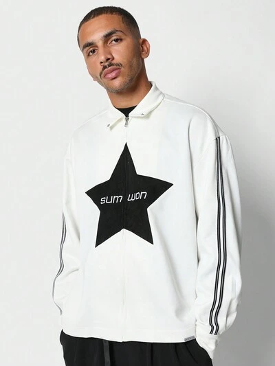 Jaqueta esportiva oversized com estampa de estrela e meio zíper e gola alta-50%