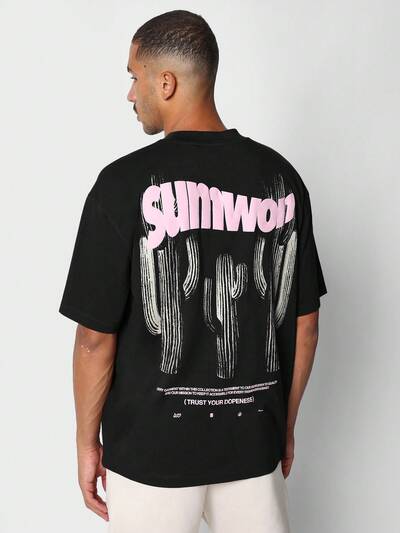 Camiseta estilo street grande com estampa gráfica de cacto e tema desérticoUS$ 13,98US$ 15,54