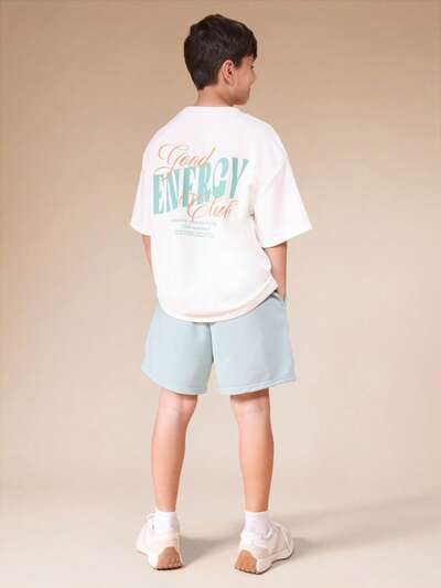 Conjunto de Camiseta Oversized e Shorts Co-Ord do Clube de Boa Energia para Meninos, Roupa Casual de Verão, Gola Careca, Manga Curta, Cintura Elástica, Uso Diário Confortável-10%
