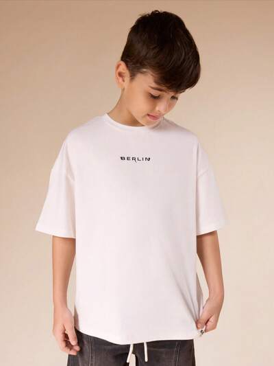 Camiseta com Logo Oversized de Manga Curta e Gola Careca para Meninos, Casual de Verão StreetwearNOVO