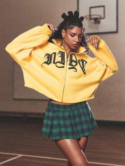 SUMWON WOMEN Saia Curta Feminina com Texto Gráfico em Estilo Manuscrito e Cintura com Cordão, Roupa Casual de Rua para Verão e Festivais