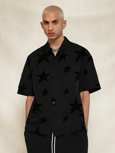 Camisa Revere de Ajuste Relaxado com Estampa Flocked em Todo o Tecido-50%